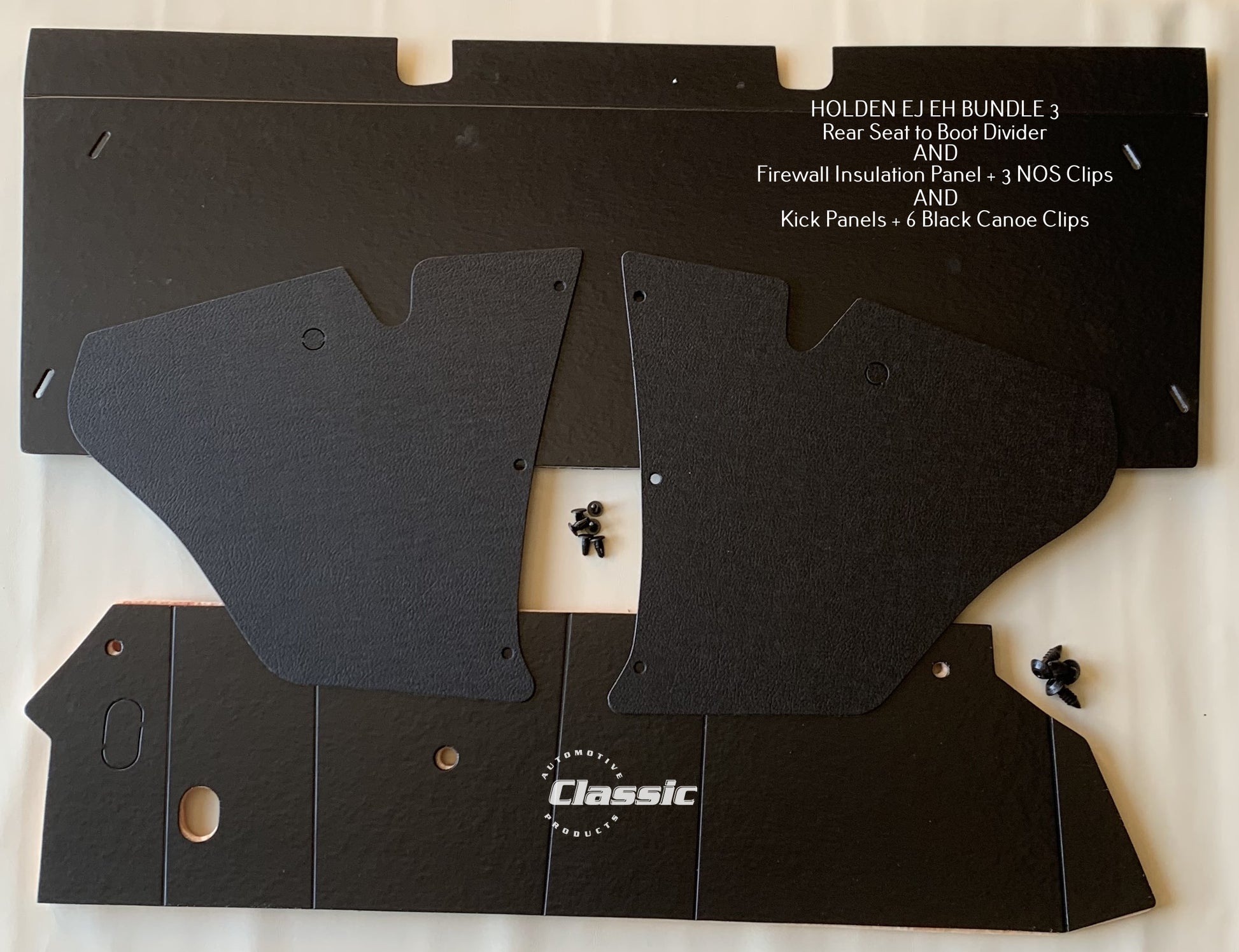 HOLDEN EJ EH BUNDLE 3: Rear Seat Panel + Pair Kick Panels + Firewall Insulation Panel