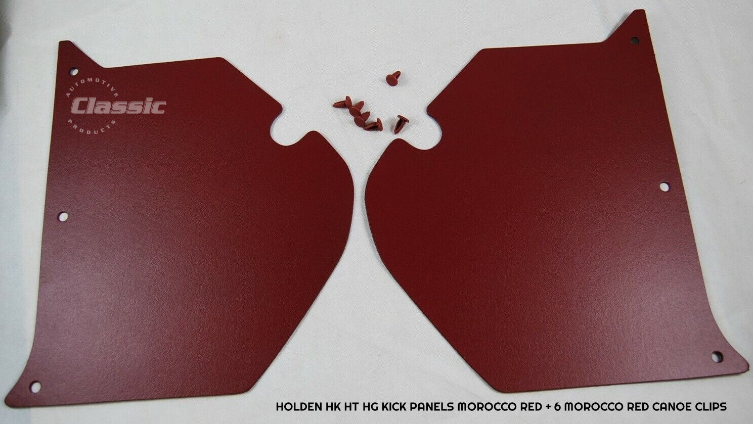 HOLDEN HK HT HG Side Kick Panels MOROCCO RED (pair) Inc 6 Morocco Red Trim Buttons