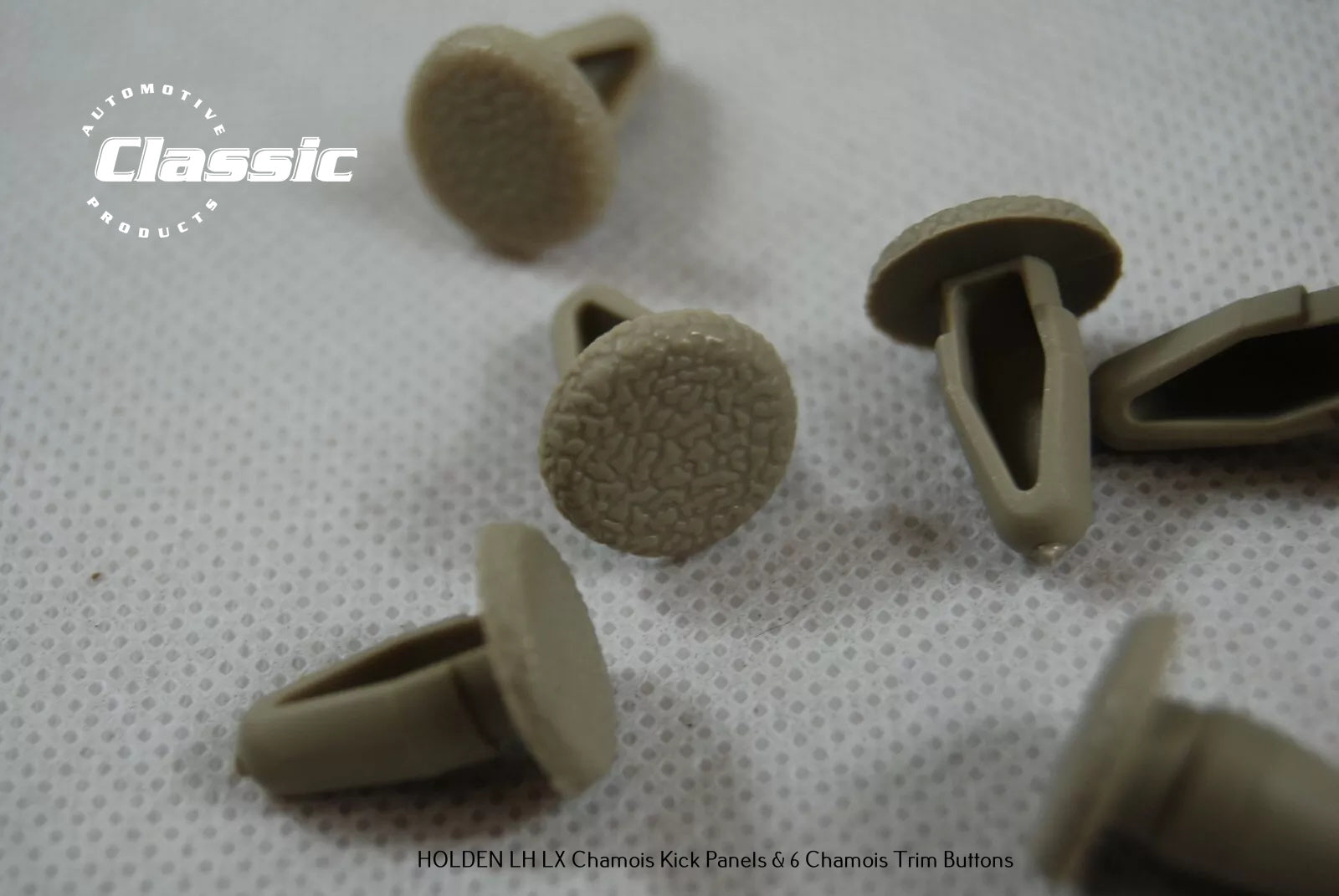 Included are 6 Chamois Trim Buttons to match the colour of the kick panels. The trim buttons have been manufactured in-house by us. The trim buttons are not “painted” and are exactly the same shape and style as the ones Holden made.